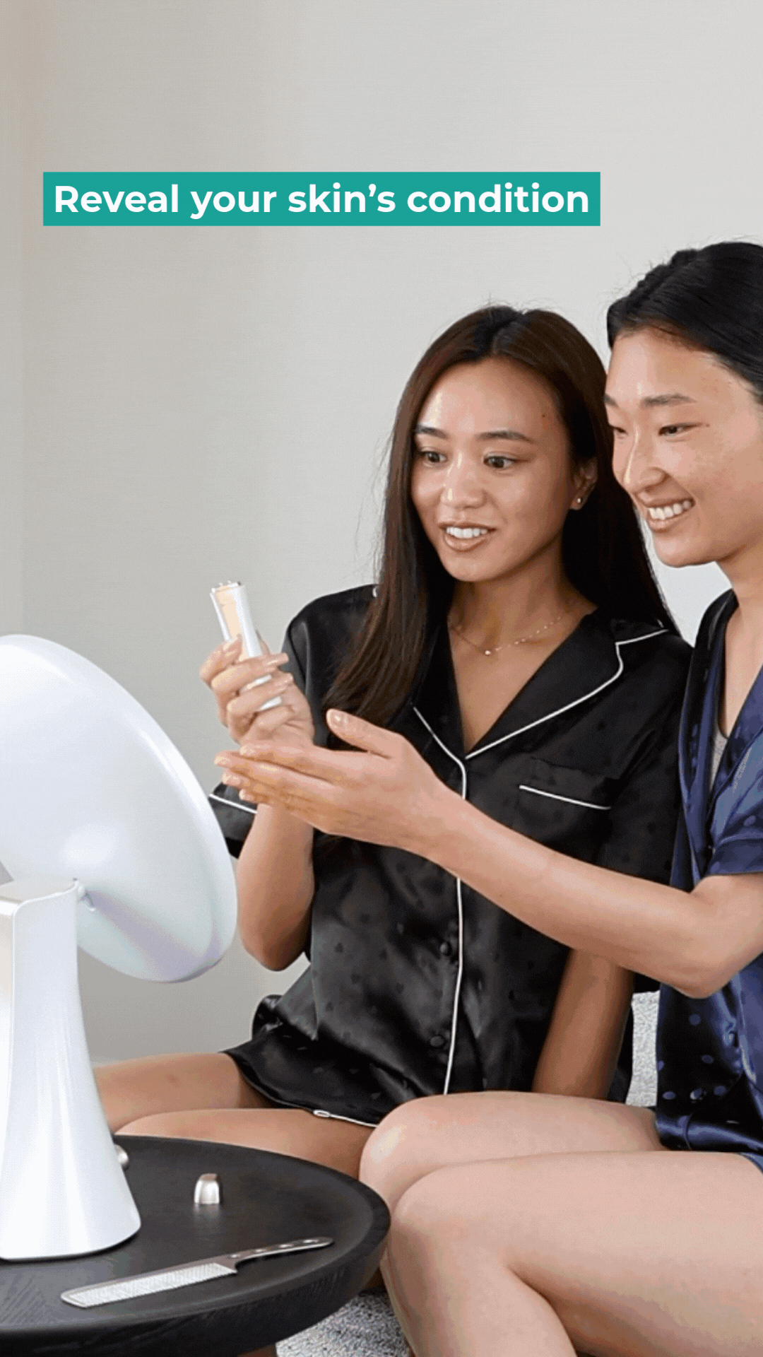 Reveal your skin’s condition: The test data is recorded and the mirror reports your skin's hydration, oil balance and firmness in each zone of your face. See so much more than your skin’s reflection - and know exactly what you need and where!