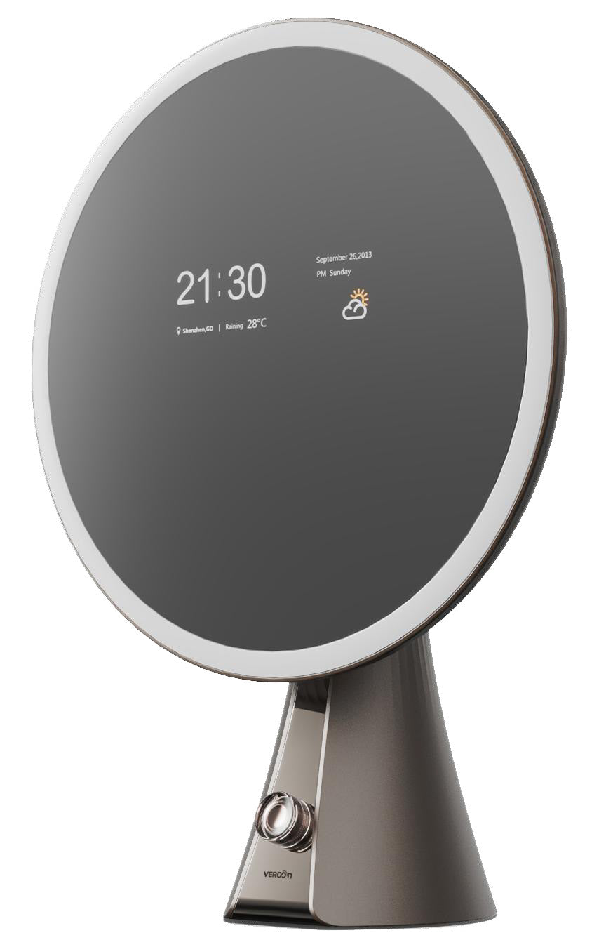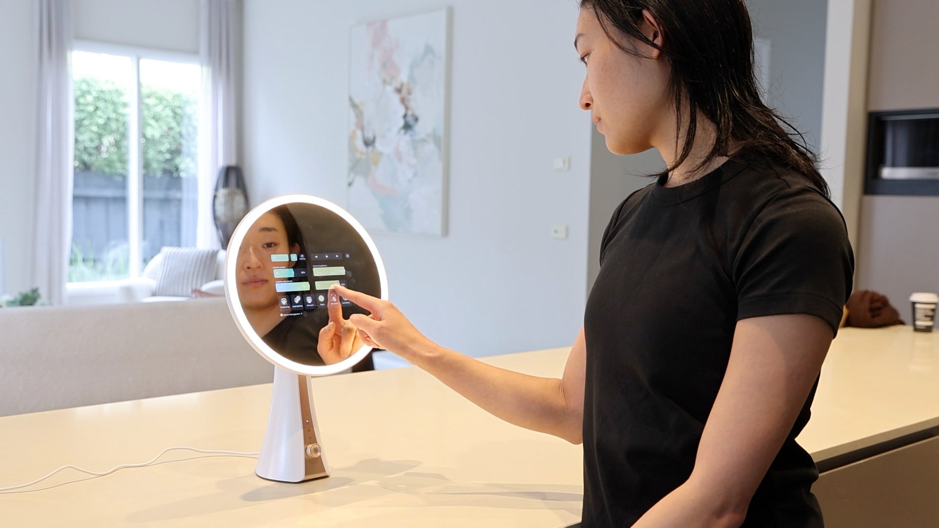 Your makeup mirror just got real smart! When you touch the screen the home display will alert you to the time, today’s weather, and the forecast UV levels so you instantly know your day ahead.